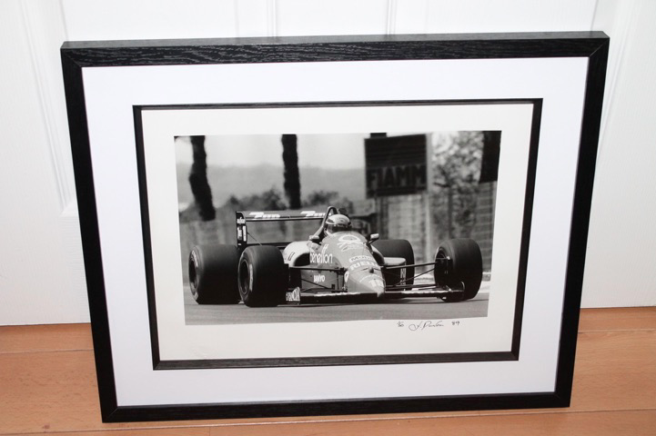 Black and White Picture, of Alessandro Nannini In the 1989 Benetton F1 car.